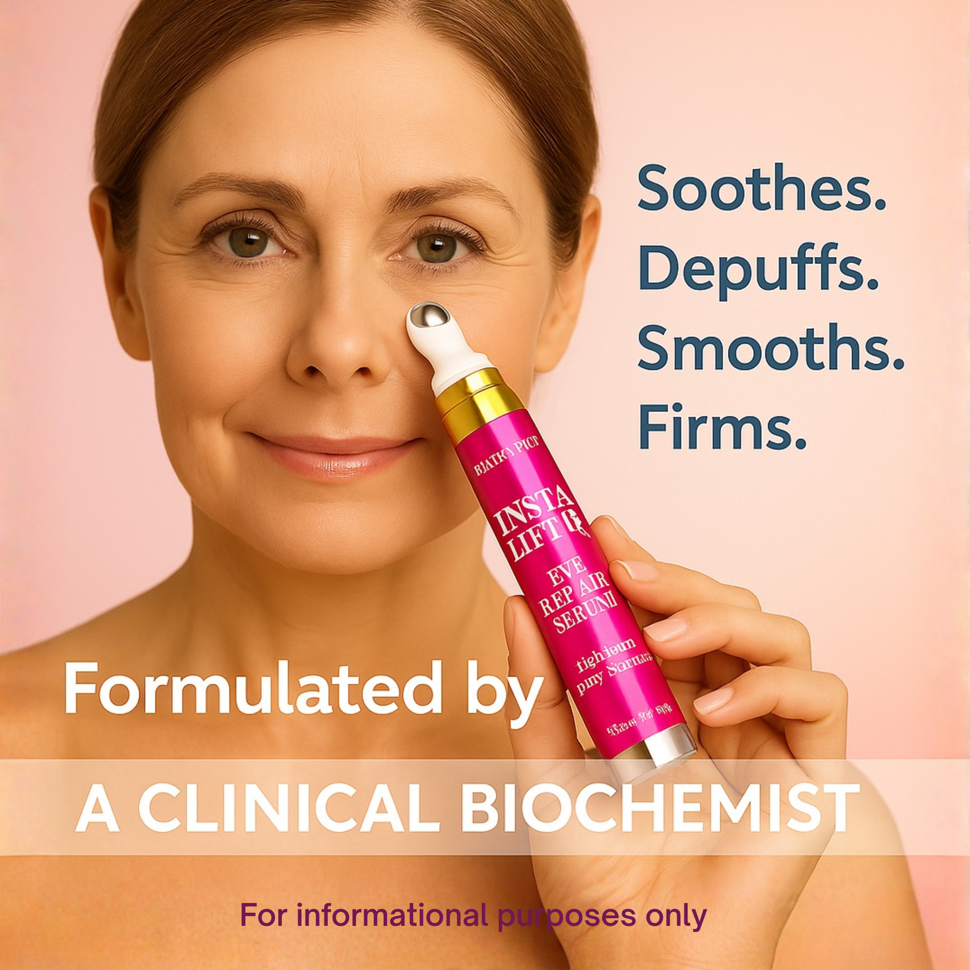 A clinically formulated, needle-free eye serum that visibly lifts, firms, and brightens while hydrating delicate skin — in seconds.